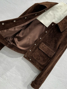 5258真皮皮衣山羊皮反绒小翻领工装风单排扣休闲长袖短夹克外套女