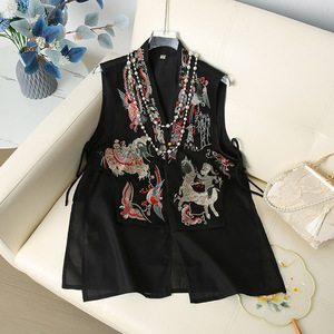 中长款马夹背心新中式女装2025新款马甲国风刺绣洋气时髦外穿上衣