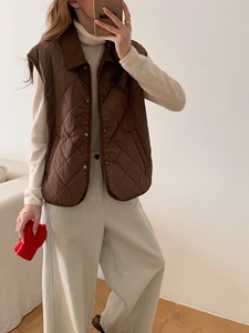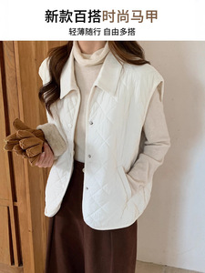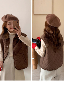 2025慵懒风秋冬小香风菱格棉服棉衣圆领上衣外套内搭保暖马甲女装