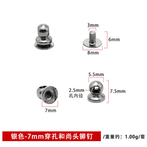 银色-7mm铝合金穿孔和尚头+6mm铁十字螺丝