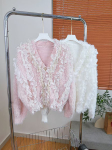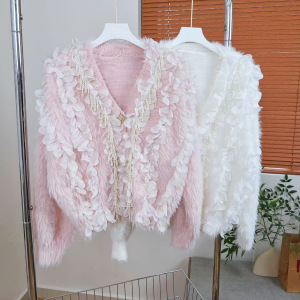 好质量气质减龄甜美仿貂绒重工串珠毛衣针织女2025新款开衫外套潮