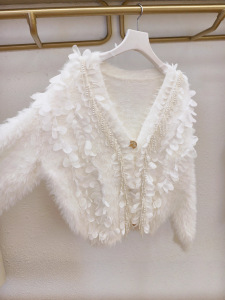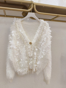 均码-295款仿水貂绒串珠鱼鳞短开衫