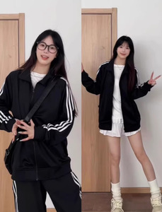 黑色【三条杠 胸前无拉链】 (优质面料)