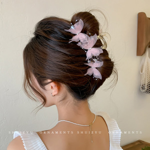 夏季优雅半扎发发夹韩系撞色鲨鱼夹气质创意抓夹2025新款甜美头饰