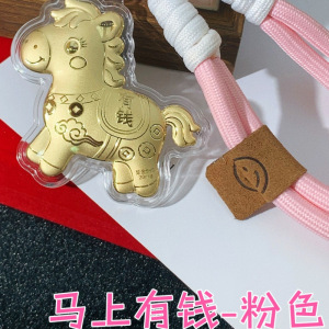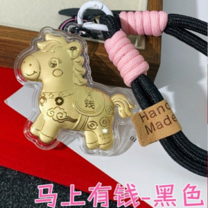 2026马年足金999马上有钱手机链挂绳黄金车钥匙扣包包挂件送女友