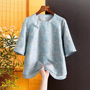 新中式桑蚕丝提花时尚百搭衬衫女2025夏季新品复古真丝洋气小衫女