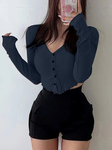 2025夏秋季亚马逊跨境辣妹气质长袖罩衫短款防晒针织开衫欧美hana