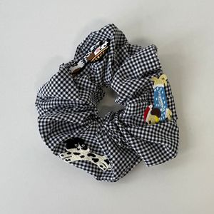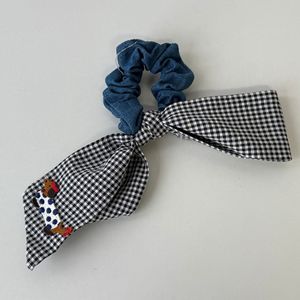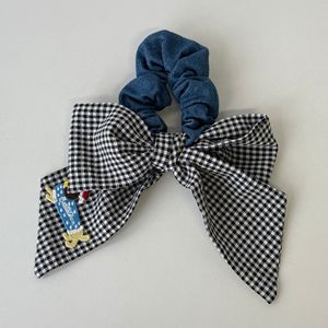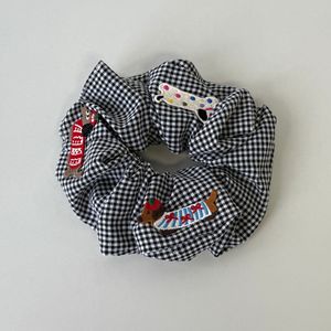 小狗贴布黑白格纹蝴蝶结新款可爱大肠圈甜美百搭发圈韩系马尾发饰