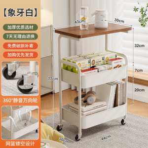 小推车置物架复古风落地带轮可静音移动多层零食架沙发茶几置物架