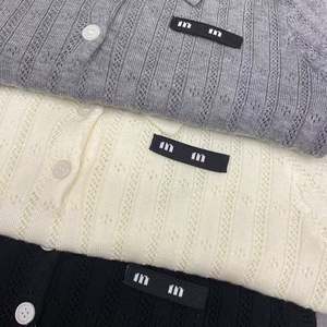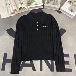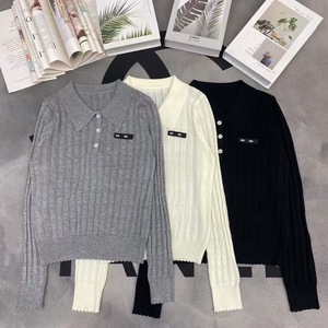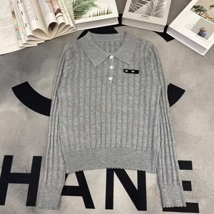 减龄少女感学院风翻领徽标刺绣针织衫女秋冬薄款长袖镂空打底上衣