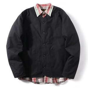 冬季日系复古宽松无领棉服外套男 工装保暖棉衣情侣潮V领开衫夹克