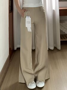 2025夏季卡其微喇裤女高腰显瘦休闲宽松不贴腿轻薄个性喇叭西装裤