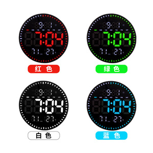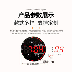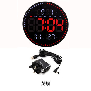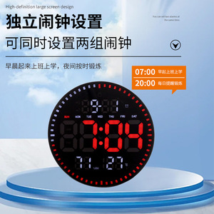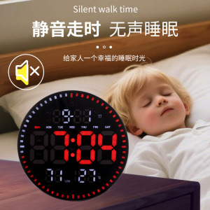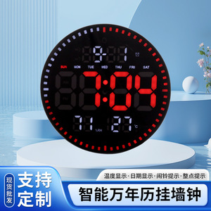 跨境英文万年历电子钟圆形卧室客厅挂墙钟led屏24小时时钟带温度