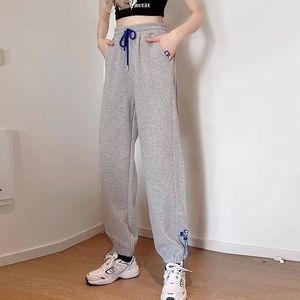 黑色运动裤子女春秋2025新款初中高中学生宽松休闲束脚九分裤卫裤