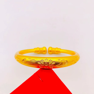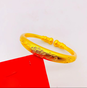 热卖款牡丹花南瓜头开口镀金手镯女复古实心加厚电镀花镯子批发