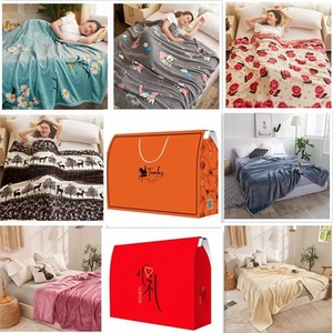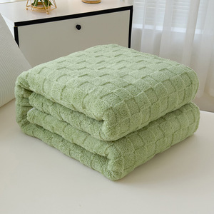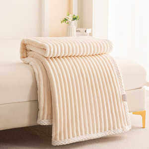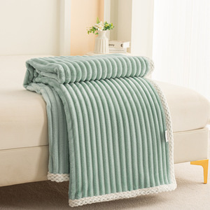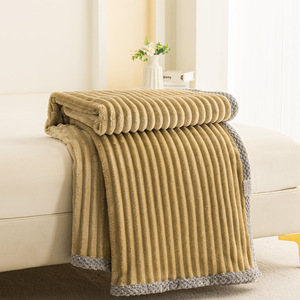 外贸法莱绒毛毯盖毯纯色条纹午休毯牛奶绒加厚保暖毯子跨境礼品毯