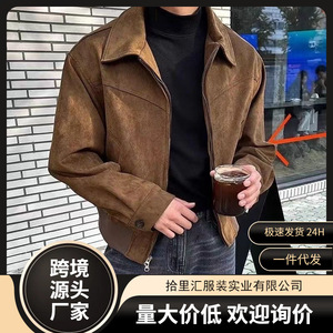 外套男春秋款高档宽松翻领加绒冬季新款时尚短款夹克港风外套潮