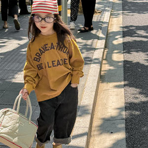 2025秋季童装新款韩版儿童长袖T恤打底衫男童女童字母卫衣上衣t