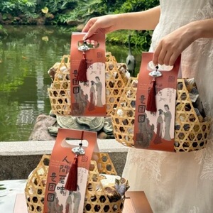 空木盒+3别针+绿蝴蝶兰+米白包布+绿平安扣流苏+圆竹节手提+随机中秋封条一个 约20*20*8CM