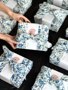 六粒牛皮纸空盒+随机中秋卡片+2别针+珍珠别针+桂花玉兔发簪+蓝印花包布+蓝流苏一个 约24*17