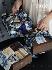 复古色抽拉空木盒+蓝仙鹤包布+木环+随机中秋贴纸 约20*20*10cm
