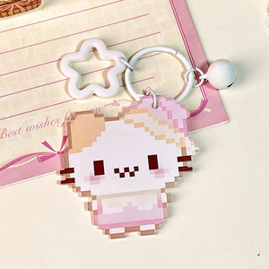 甜美小猫铃铛挂件像素风可爱亚克力钥匙扣学生包包挂饰送闺蜜礼物