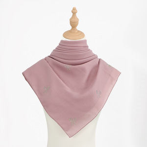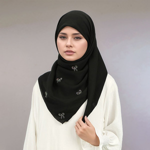 跨境新款热销蝴蝶结烫钻涤纶百搭方巾中东马来时尚装饰披肩包头巾