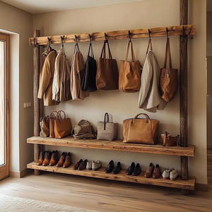 侘寂风家用民宿原木衣帽架全实木落地衣帽间大型衣架老榆木挂衣架