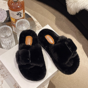 网红爆款时尚毛毛一字拖2025秋冬新款潮流时尚居家外穿毛毛拖鞋女