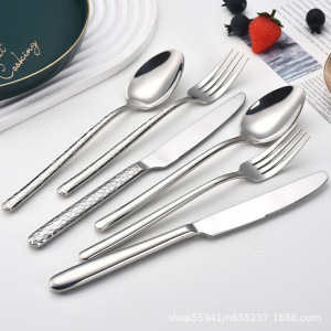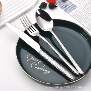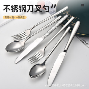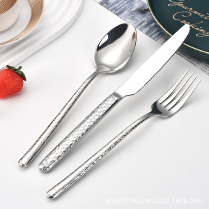 亚马逊不锈钢刀叉勺茶勺餐具高档锤纹轻奢餐厅牛排刀叉酒店商用