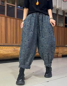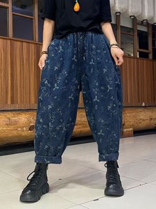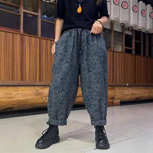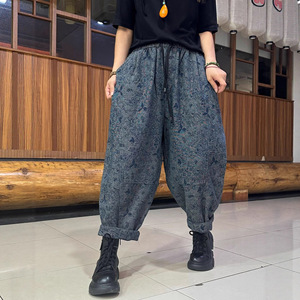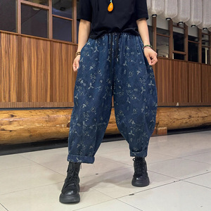 双面提花牛仔裤女 2025秋新款松紧腰文艺复古宽松大码哈伦裤 6029