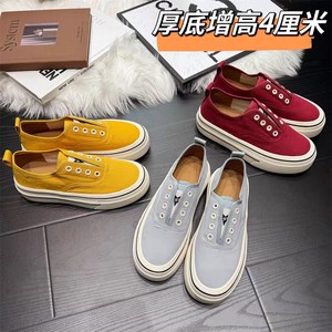 厚底帆布鞋女2025新款春夏季一脚蹬懒人鞋百搭透气内增高休闲板鞋