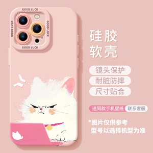 蓝色猫咪16promax手机壳苹果新款iPhone16女13高级12全包硅胶软壳