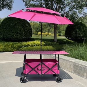双底升降摆摊车(粉)+167×60粉桌板+伞