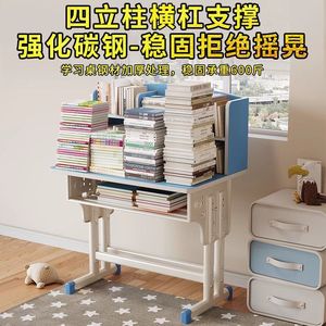 升级5钢柱桌+25款木椅【双层高书架】樱粉