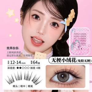 萌睫尚品免胶无梗小绒花假睫毛妈生自然仿真分段式卷翘自粘眼睫毛