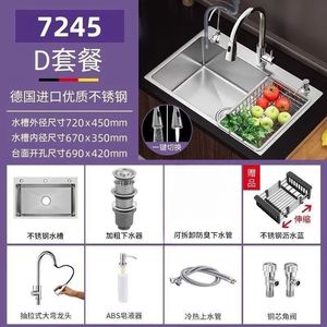 D【水槽+沥水篮下水抽拉大弯龙头全套+净水】-加厚拉丝水槽【72-45】