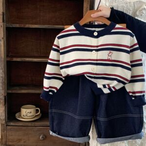 邦诚儿童毛衣2025秋季新款男女童开衫中小童条纹针织衫宝宝秋装潮