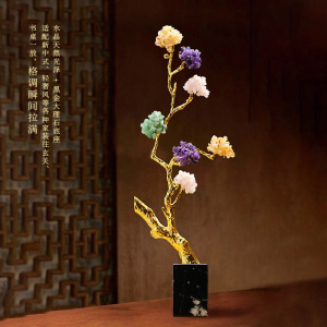 【彩汇祥光】天然彩色水晶+金属枝干+大理石底座