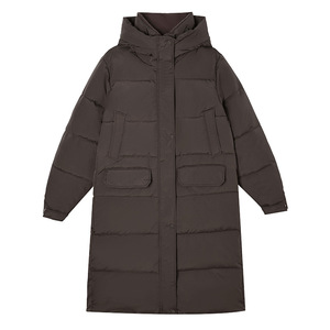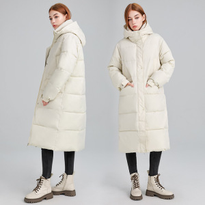 欧洲站2025外贸新款时尚百搭长款过膝连帽棉服冬季宽松厚保暖棉袄