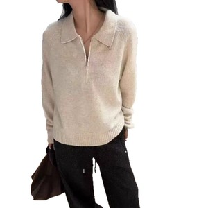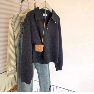 韩版polo领半拉链套头毛衣女秋冬季新 款休闲慵懒风 百花绒针织衫