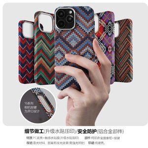 适用16promax波西米亚15凯夫拉磁吸手机壳复古高级感碳纤维保护套