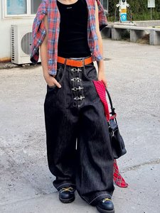 美式复古高腰系带弯刀牛仔裤女2025夏新款百搭小众宽松阔腿香蕉裤