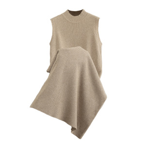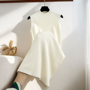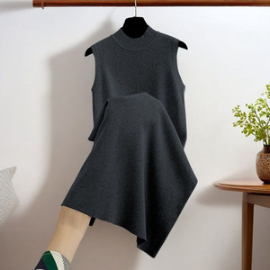 羊毛半高领针织连衣裙女秋冬新款中长款无袖背心毛衣裙内搭打底裙