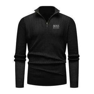 跨境秋冬季男士针织衫半拉链立领欧美绣花时尚竖条纹毛衣外套男