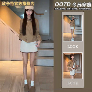 【欣争艳】胖mm纯欲复古格纹夹克外套女早秋富家千金收腰半裙