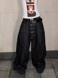2025美式高街复古飞机扣毛边牛仔裤男小众设计高级感直筒长裤子潮