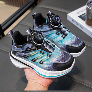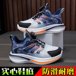 儿童运动鞋男童网鞋秋季2025新款透气纽扣鞋轻便软底男孩休闲网鞋