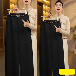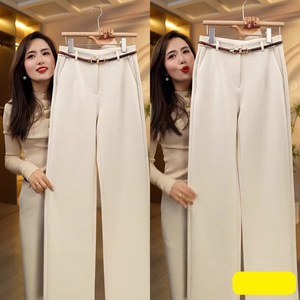 杏色休闲裤毛呢秋冬阔腿裤女2025新款西装裤窄版直筒裤高级感裤子