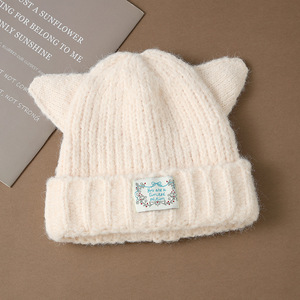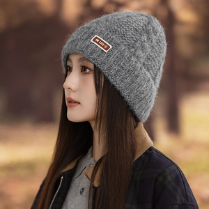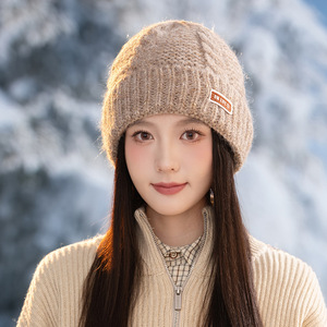 帽子女秋冬布标彩色豆豆针织帽显脸小韩版百搭防寒保暖护耳毛线帽